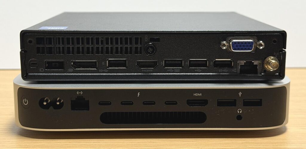 サイズの参考として、Windows ミニPCとM2 Pro Mac miniとの比較写真を掲載します。