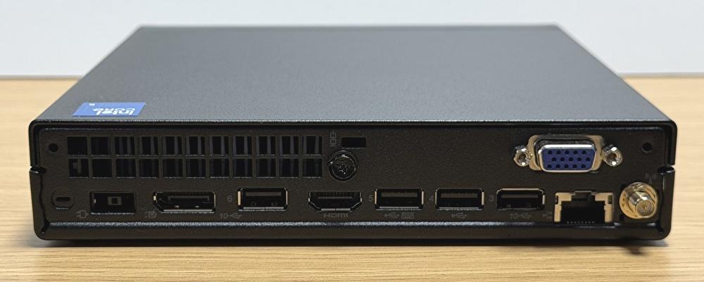 ▼背面のポート類は左から、電源コネクター、DisplayPort 1.4、USB 3.2 Gen 2、HDMI、USB 2.0 x 2、USB 3.2 Gen 2、RJ45 有線LAN、D-Sub