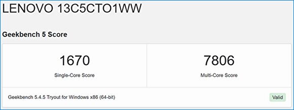 Geekbench 5のスコアは「シングルコア 1670、マルチコア 7806」。2つめのCore i5-13500Hと比較すると、シングルコアは同水準である一方、マルチコアは控えめです。