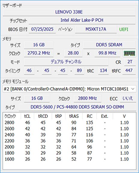 ▼装備するメモリは DDR5 16GB、デュアルチャンネルでの動作です。