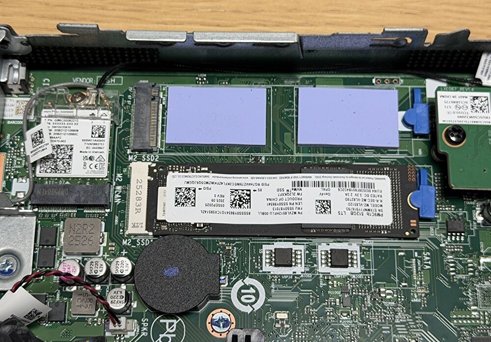 ▼2280サイズのM.2 SSDと空きスロットです。左側にWiFiモジュールがあります。