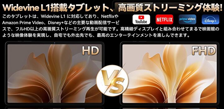 | その他 | 2スピーカー、金属製の背面、顔認証に対応、Widevine L1対応(Netflixにも対応) |
