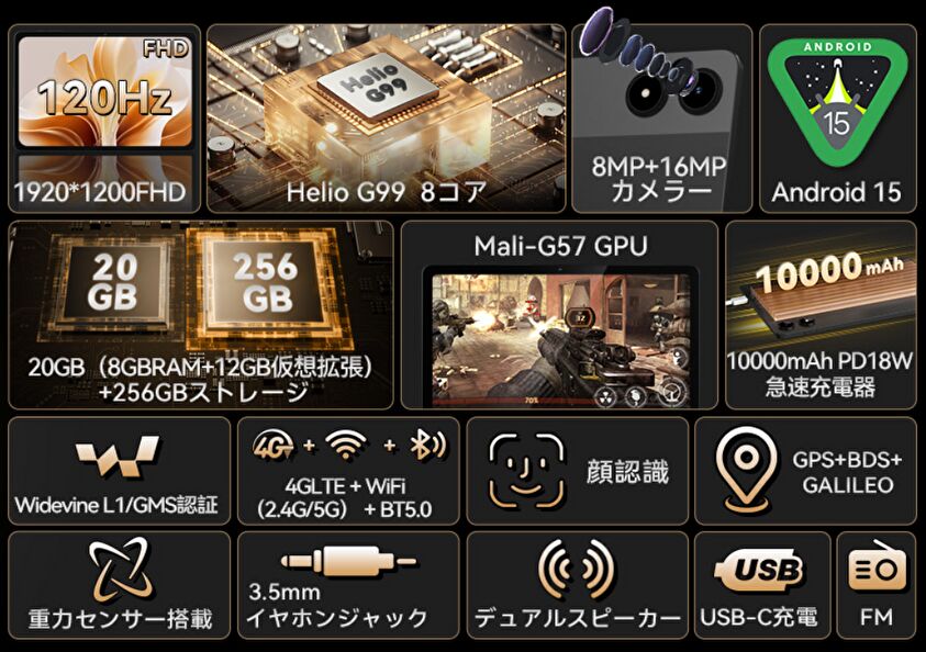 2025年12月13日現在、SoCにHelio G99を搭載する11インチタブレットとして、Amazonでは「LZF」ブランドの「ZPad3」が売れ筋の一つとなっています。私は同ブランドの製品を認識していなかったのですが、8GBの物理メモリ、LTEに対応、Widevine L1をサポートなど、Helio G99搭載のタブレットとしては定番のスペックにして 18,049円と、低価格の製品です。