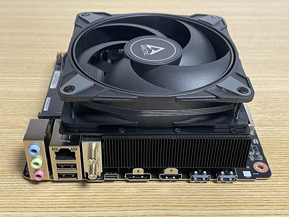 - 大きなヒートシンクは付属していますが、CPUファンは付属していません。12cmファンを取り付け用のファンブラケットが付属しており、別途ユーザーにてファンを用意する必要があります。