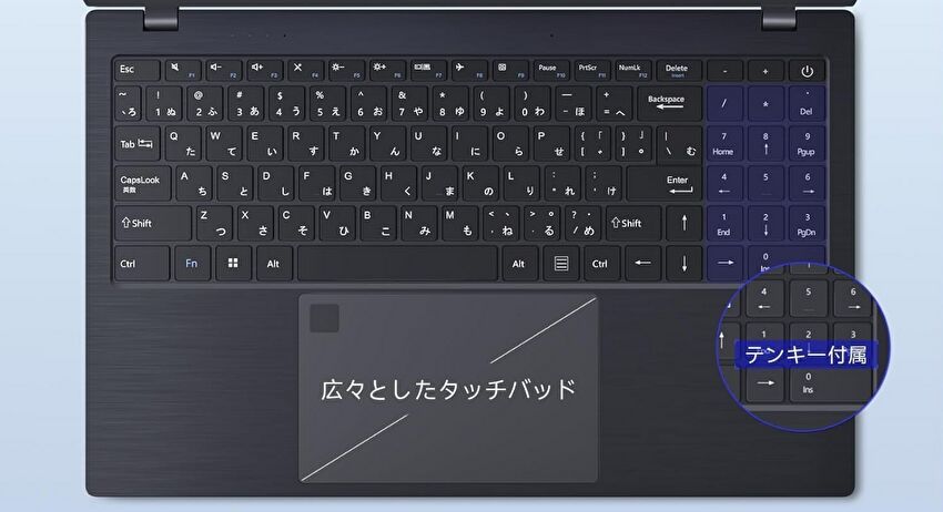 この価格帯、あるいは文末で記載のより低価格な製品もありますが、本製品は MS Offcice 2024搭載、タッチパッドに指紋認証を装備、USB-Cを2ポート(電源とフル機能)を装備することにメリットがあります。