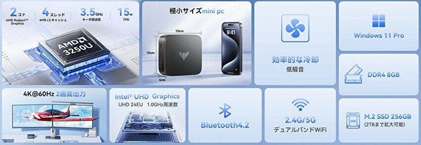| CPU | AMD Ryzen 3 3250U、4コア 4スレッド、最大 3.5GHz |