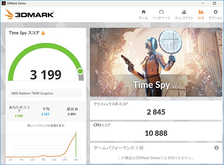 ▲▼CPUに AMD Ryzen 9 8945HSを搭載するPCは、上の記事にて実機レビューしています。以下の画像は、実機で計測のCINEBENCH R23と3DMARK Time Spyのベンチマークスコアです。当然ながら、普段使いではキビキビと動作し、軽めのゲームもプレイすることができます。