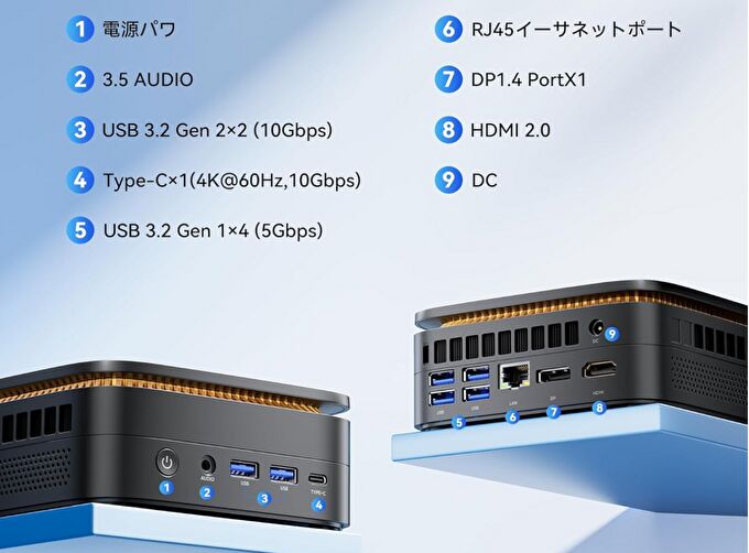 NiPoGI P1、Ryzen 3 3300Uを搭載するミニPCのスペック、フル機能 USB-Cを装備、M.2 SSDを増設可能