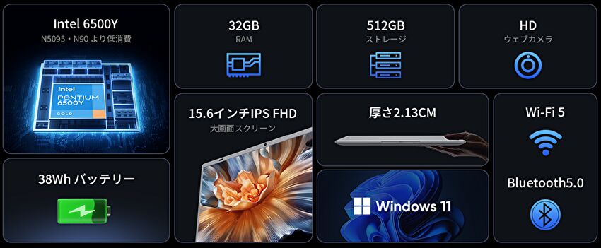 CPUにPentium Gold 6500Y、メモリ 32GB、SSD 512GBを搭載する 15.6インチ ノートPCが、Amazonにて46,800円で販売中です(2026年4月29日現在)。