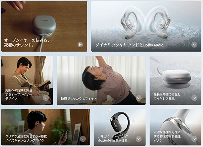 以下の画像は縦に長いために2分割にしていますが、製品名をベースとした「OpenFit 2+ by Shokz」として即認識しました。