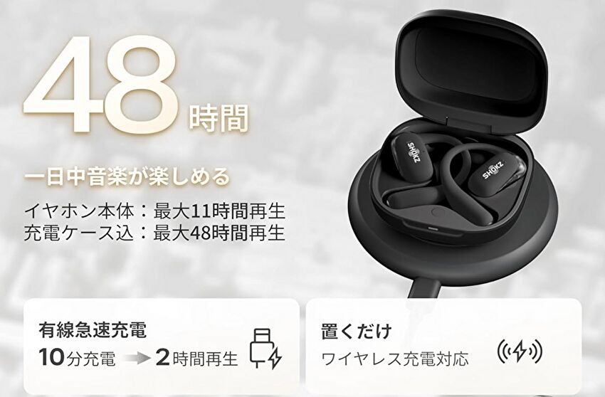 - USB Type-Cでの充電に対応の「Openfit 2」
