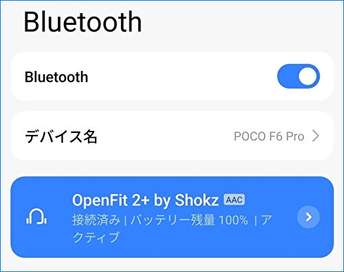 ▼iPhoneと同様に「OpenFit 2+ by Shokz」として認識しました。