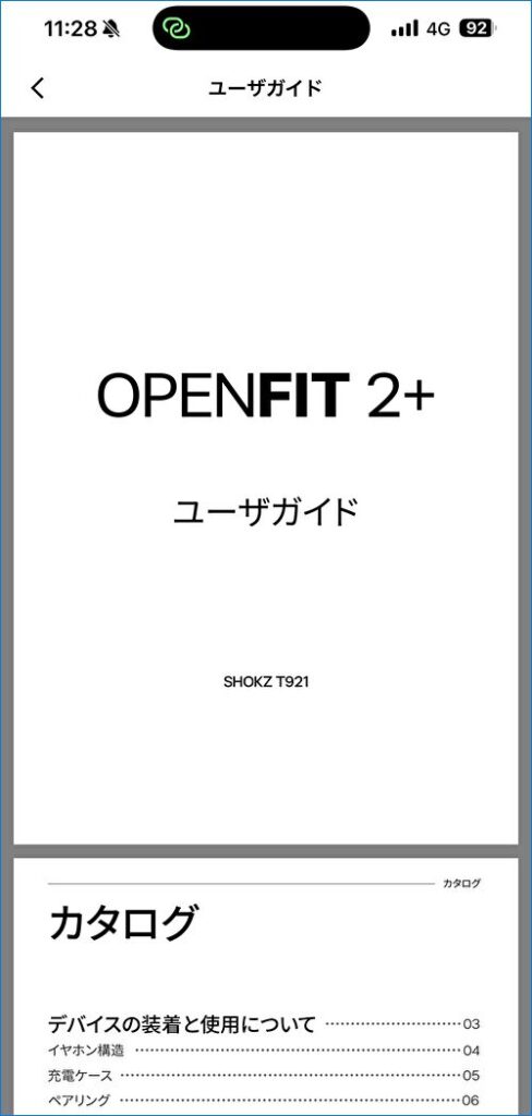 - 付属の説明書は文字が小さく判読しがたいものの、「Shokz」アプリ内のユーザーガイドでカバーすることができます。