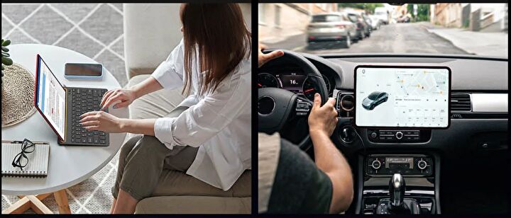▼専用キーボードは用意されていませんが、13.4インチの大型タブレットですので、以下の左の画像のように汎用のタブレットと組み合わせて PCライクに使用し、ブログ記事やSNSの発信などで活用できそうです。