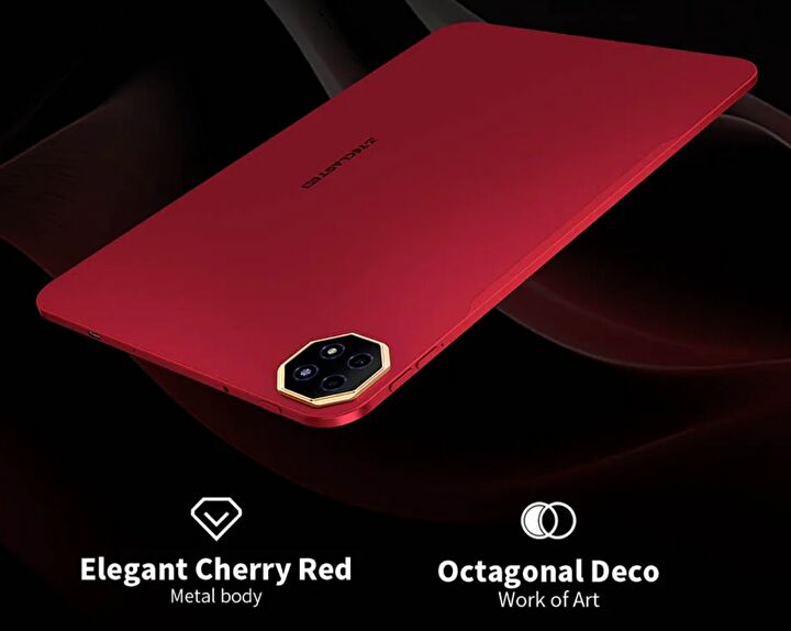 ▼同社の他のタブレットと同様に、金属製の背面、「エレガントチェリーレッド」と表現されている鮮やかなレッドです。個人的には、レッド以外にグレーなどのモデルもあるとよかったのでは、と思います。