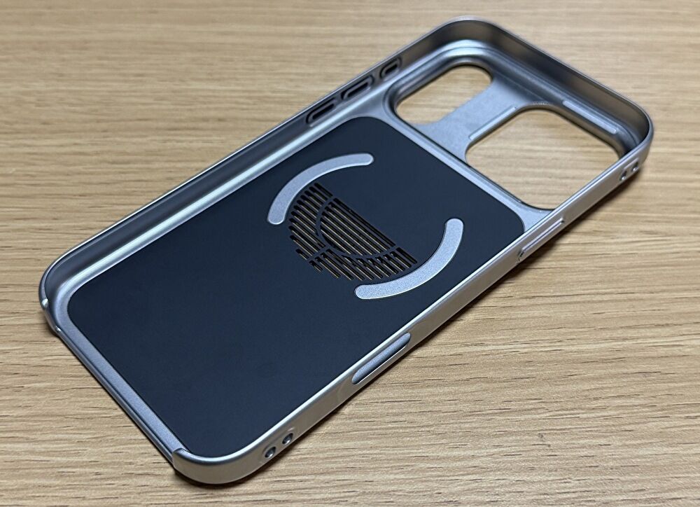 ▼MagSafe対応のケースです。マグネットリングの内側・円形の半分に通風孔があるとおり、冷却対応も考慮されています。なお、製品説明では、グリルデザインのグラフェンと表現されています。