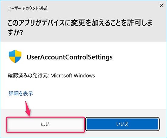 こちらの「ユーザーアカウント制御設定の変更」を行うことにより(簡単数ステップで対応可能)、「ユーザーアカウント制御」「UACダイアログ」のスクショを取得することができます。