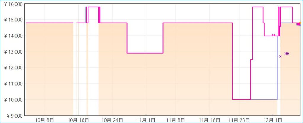 SoCは 8コアのUNISOC T606、LTE未対応のWiFi モデルです。12月7日現在のAmazon 価格は 14,652円。先日のブラックフライデー価格をウォッチしていなかったのですが、以下の価格推移から想定いただければと思います。